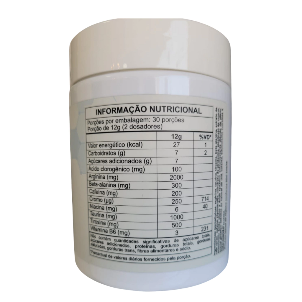 Recomenda-se tomar uma dose de 2 medidas de dosadores (12g) em 250 ml de água 30 minutos antes do treino. Consulte um profissional da saúde para ajustes específicos à sua rotina.